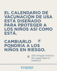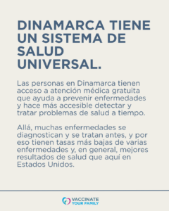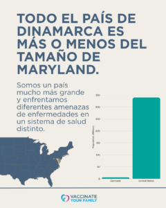 Última hora: Estados Unidos no es Dinamarca. Algunos líderes en EE. UU. han empezado a mirar el calendario de vacunación danés, que tiene menos vacunas. Pero ese calendario fue creado para los riesgos y el sistema de salud de Dinamarca. El calendario de EE. UU. se ha desarrollado por años para proteger a los bebés y niños de las enfermedades que enfrentan aquí. Podemos aprender de Dinamarca, pero nuestras decisiones deben basarse en datos de EE. UU. para proteger a las familias de EE. UU.